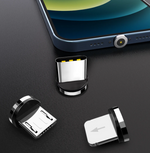 L’embout magnétique se fixe à votre appareil grâce à un aimant puissant intégré dans le connecteur. Il est conçu pour s'attacher solidement au port de charge de votre téléphone, assurant une connexion fiable et rapide.